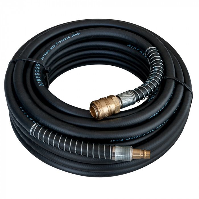 Gumena crijeva ojačana vlaknima odlikuju se iznimnom fleksibilnošću, a ujedno i izdržljivošću – do 20 bara. Čak i na niskim temperaturama zadržavaju svoju fleksibilnost, olakšavajući korisniku kretanje s alatom i omogućujući iskorištavanje 100% dužine crijeva. Gumena crijeva su standardno opremljena utikačem i brzim spojem tipa EURO. Oko spojnice su postavljene opruge koje sprječavaju savijanje crijeva. Unutarnji promjer od 8 mm omogućuje prijenos više od 400 l komprimiranog zraka u minuti. Posebno se preporučuju za napajanje pneumatskih alata, pištolja za puhanje ili pištolja za prskanje. Gumena crijeva ne uzrokuju ogrebotine, stoga je njihovo korištenje sigurno u auto radionicama.