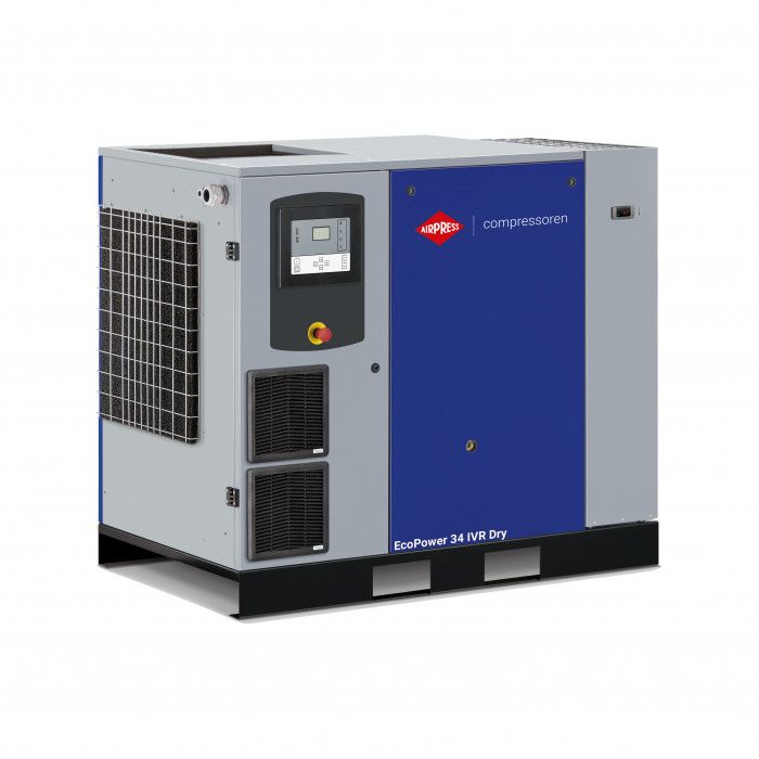 EcoPower 35D IVR Dry je napredni šrafasti kompresor s promjenjivom brzinom, izravnim pogonom, inverterom i integriranim sušilom, dizajniran za industrijske primjene koje zahtijevaju učinkovitost i izvrsnu kvalitetu zraka. Uređaj nudi protok zraka od 840 do 4116 l/min pri maksimalnom radnom tlaku od 13 bara. Integrirano sušilo uklanja vlagu, čime štiti alate i pneumatske sustave od korozije i oštećenja.